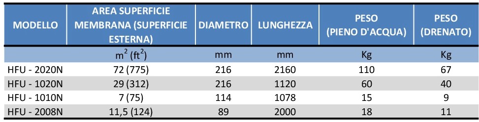 • Materiale delle membrane = PVDF (Polivinilidenfluoruro);
