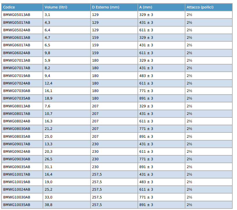 Adatte per sistemi di trattamento acqua ad uso potabile e industriale; Conformi alla Direttiva Europea 2014/68/UE per recipienti