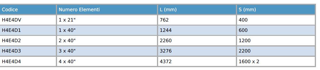 - Completi di staffe di fissaggio e selle (n. 2 pezzi da 1 a 3 elementi, n. 3 pezzi da 4 a 6 elementi).